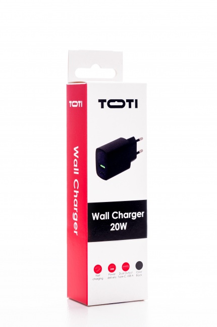 SEEK TOTI 20W Type-C + USB A sieninis greitasis įkroviklis, juodas