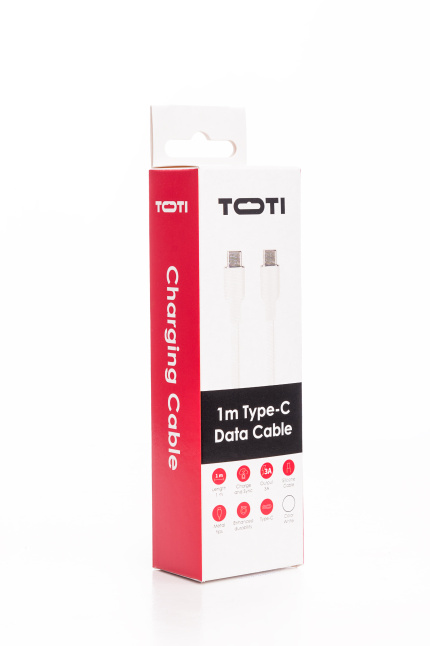 SEEK TOTI Type-C į Type-C, 1m silikoninis laidas 3A, baltas