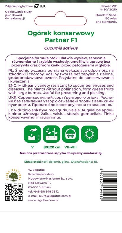 Sėklos, agurkai PARTNER F1, 50 vnt.
