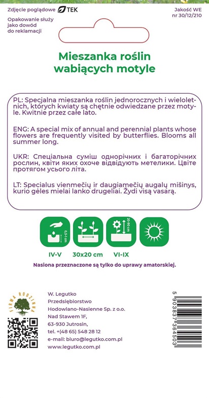 Sėklos gėlių mišinys, traukiantis drugelius, 1 g
