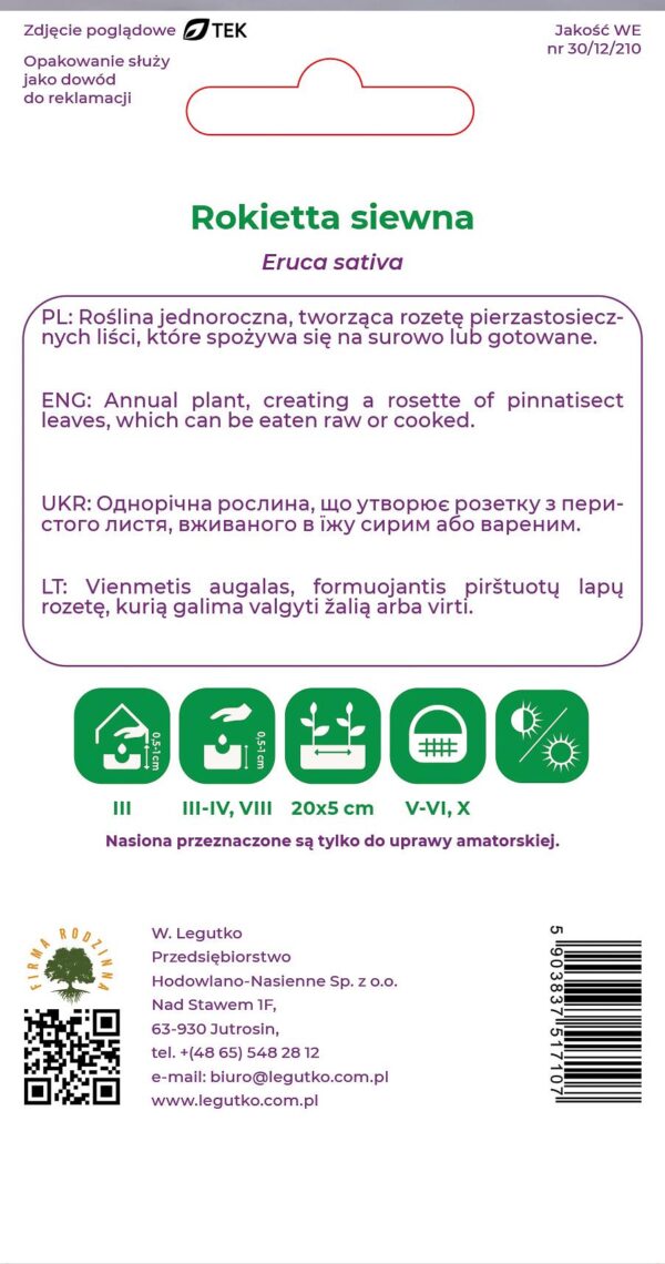 Prekės ženklas- -. Prieskoninės žolelės rūšis- Gražgarstė (rukola). Prekės svoris su pakuote- 0.5 g.