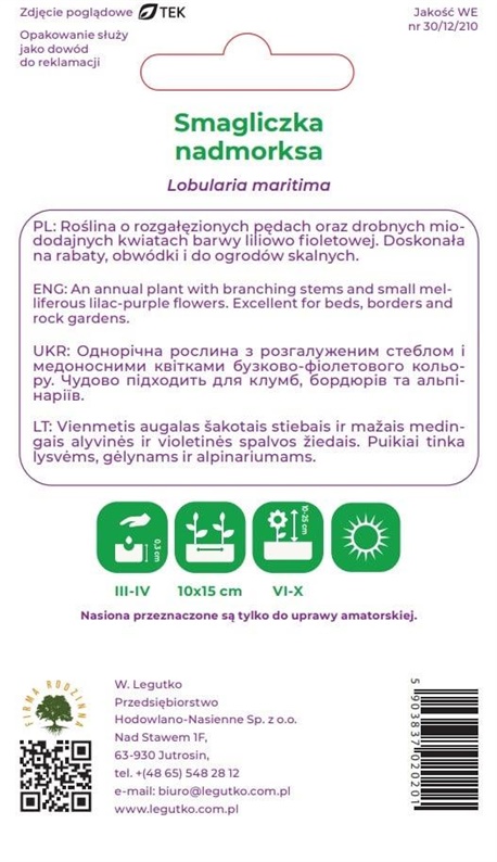 Gėlių rūšis- Lobuliarija. Prekės svoris su pakuote- 0.5 g.