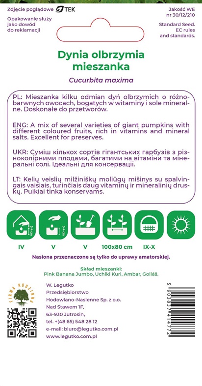 Prekės ženklas- -. Sėklos daiginimui- Ne. Daržovių ar vaisių rūšis- Moliūgai. Svoris- 3 g.