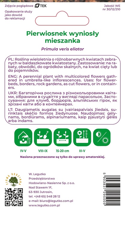 Gėlių rūšis- Raktažolė. Prekės svoris su pakuote- 0.3 g.