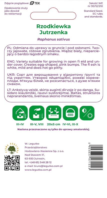 Sėklos, ridikėliai JUTRZENKA, 5 g
