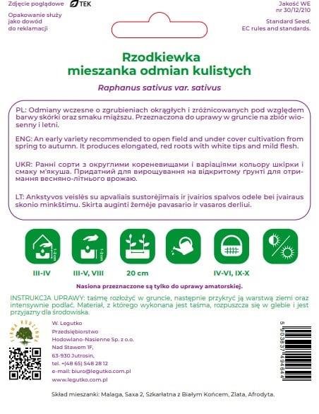 Prekės ženklas- -. Sėklos daiginimui- Ne. Daržovių ar vaisių rūšis- Ridikėliai.