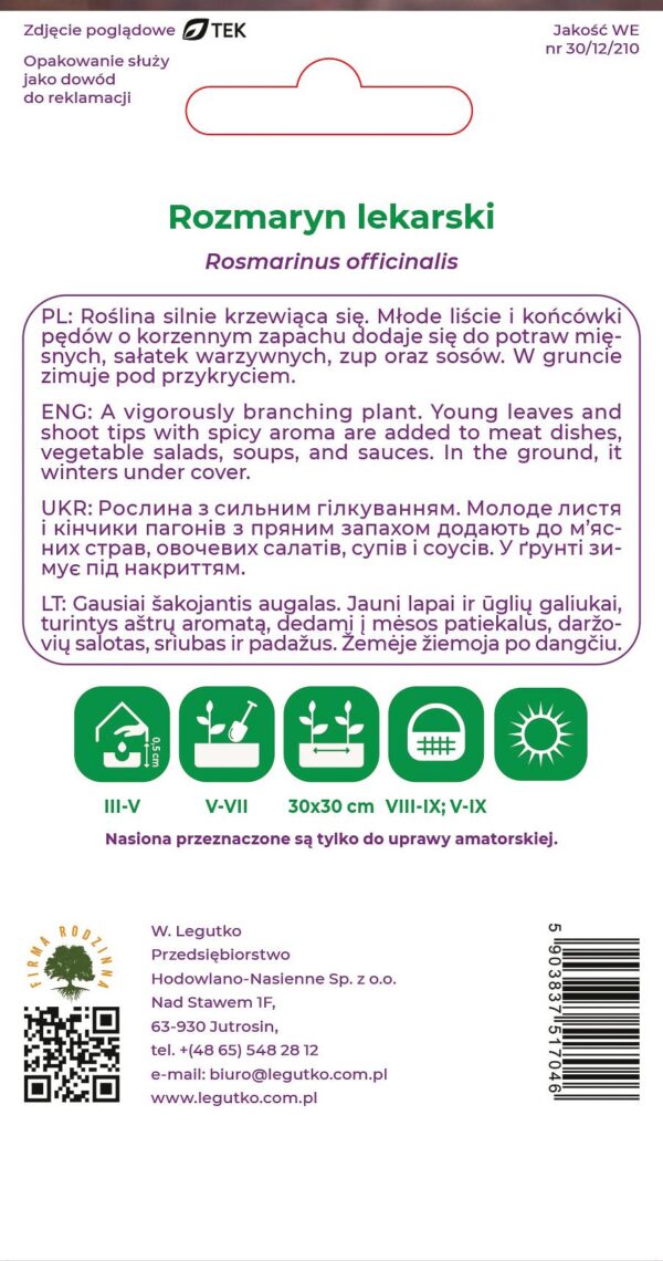 Prekės ženklas- -. Prieskoninės žolelės rūšis- Rozmarinai. Prekės svoris su pakuote- 0.1 g.