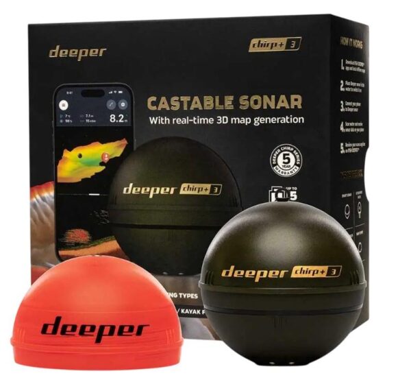Prekės ženklas- Deeper. Modelis- Smart Sonar Chirp+ 3. Ekrano dydis- 2.6 in. Spinduliavimo galia (RMS)- 10 W. Dažnis- 100 – 675kHz. Maksimalus skenuojamas gylis- 100 m. Skenuojamo spindulio laipsnis- 7 – 47°. Navigacijos (GPS) funkcija- Taip. Apsaugos laipsnis (IP)- Nėra. Žuvies atpažinimo funkcija- Taip. Temperatūros jutiklis- Taip. Palaikomos kalbos- Lietuvių, Rusų, Latvių, Estų, Vokiečių, Ispanų, Prancūzų, Lenkų, Kroatų, Bulgarų, Vengrų, Olandų, Italų, Norvegų, Rumunų, Suomių, Čekų, Ukrainiečių. Jungtys- USB Type-C. Komplekte- CHIRP+3 sonaras, USB laidas, neopreno maišelis, 2 tvirtinimo varžtai, trumpas vartotojo vadovas, saugos taisyklės, naktinės žvejybos dangtelis. Privaloma garantija- 24 mėn.