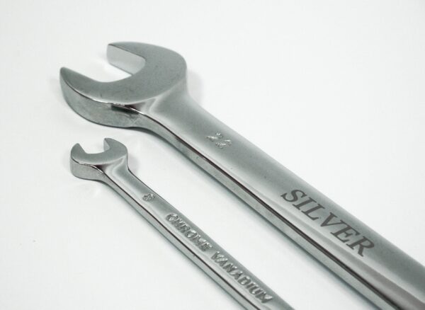 SILVER kombinuotų veržliarakčių su terkšle rinkinys, 8 vnt. Dydžiai: 8, 9, 10, 13, 15, 17, 19, 22 mm