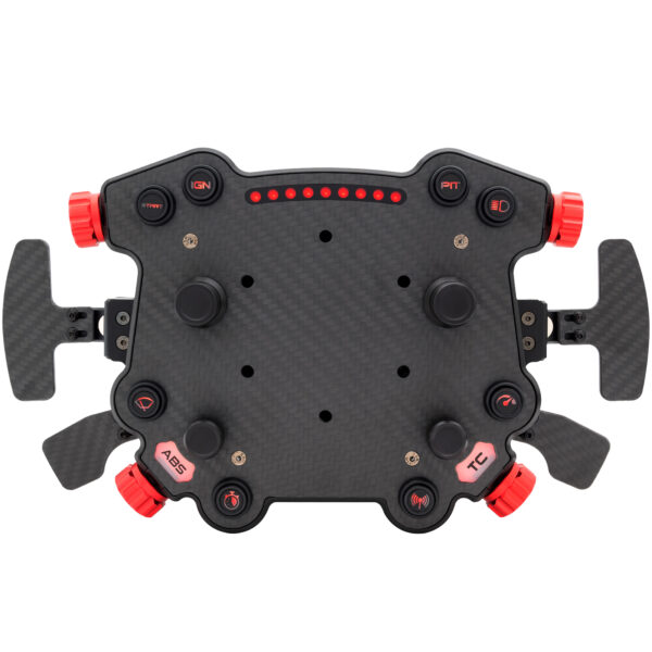 Hub for steering wheels, with knobs for separate gear lever, compatible with 320 to 350 mm diameter, 14 controls, patented HALL paddle module, material made of CNC aluminium and carbon fibres