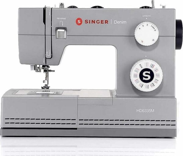 SINGER Heavy Duty 6335M siuvimo mašina – tai dar viena šios sustiprintos konstrukcijos serijos mašina, pasižyminti puikiomis techninėmis charakteristikomis, išskirtine tvirta mašinos konstrukcija, bei nestandartiniu dizainu.