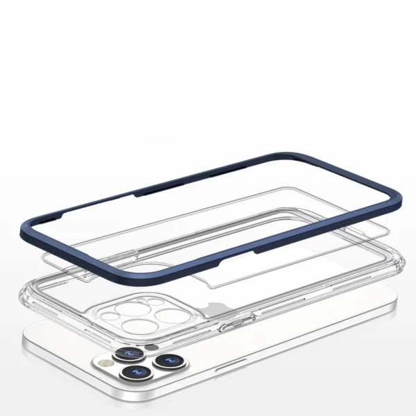 Skaidrus 3in1 dėklas telefonui Apple iPhone 12 Pro Max mėlynos spalvos frame gel