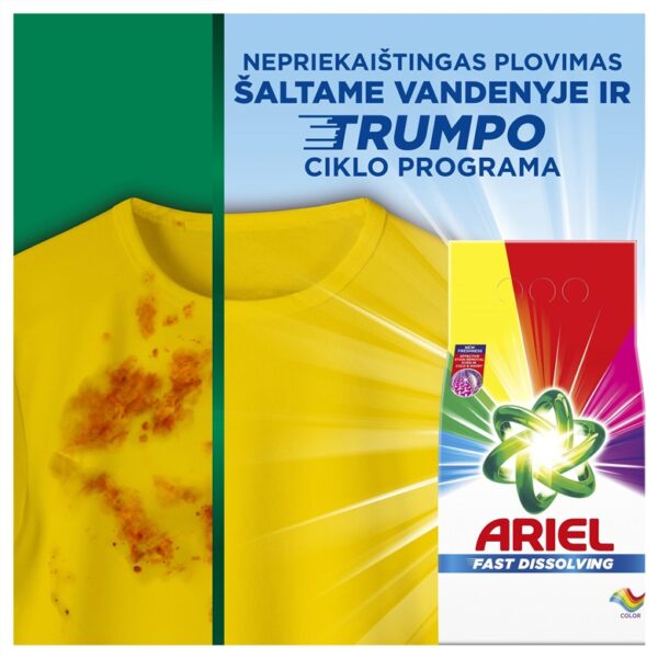 Prekės ženklas- Ariel. Kolekcija- color 36 skalbimai. Svoris- 1.98 kg. Skalbiamosios priemonės paskirtis- Spalvotiems skalbiniams.