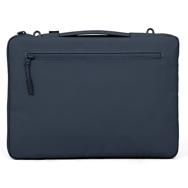 The interior of the sleeve is lined with soft padding that absorbs shocks and protects the laptop from damage. The main zipper closure is located on the short side, allowing quick access to the contents. Additionally, the front and rear zippered pockets offer extra space for smaller accessories such as cables or notebooks.