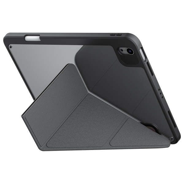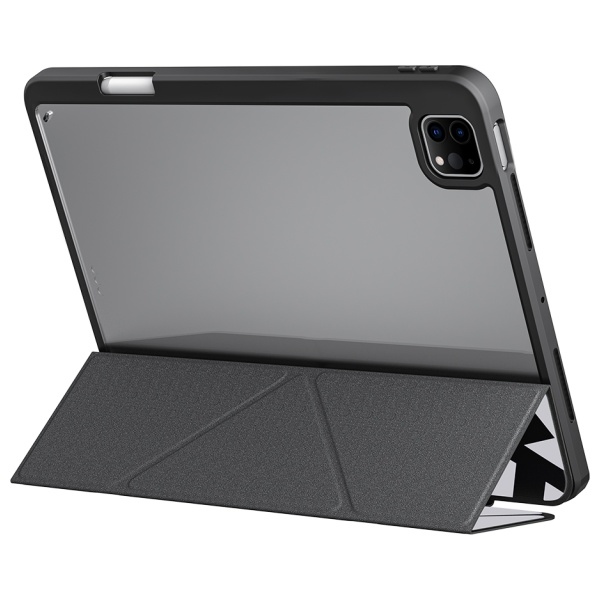 The case features a detachable Y-fold cover, allowing the iPad to be positioned in both landscape and portrait modes. This makes hands-free use convenient – the perfect solution for watching movies or working. The magnetic closure ensures stability and security, while the built-in slot for the Apple Pencil provides easy stylus storage.