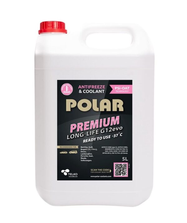 Prekės ženklas- Polar. Aušinimo skysčio tipas – Antifrizas. Spalva- Rožinė. Talpa/svoris- 5 l. Reikia skiesti distiliuotu vandeniu – Ne. Koncentratas- Ne. Papildoma informacija- • Aušinimo skystis etilenglikolio pagrindu, kurio sudėtyje yra pažangiausios organinės rūgšties technologijos kartu su silikatu ir fosfatu (PSi-OAT). • Naujiems Audi, Bentley, Bugatti, Lamborghini, Porsche, Seat, Škoda ir Volkswagen automobiliams, kur rekomenduojama naudoti TL 774-L aušinimo skystį. • Išlaiko švarius šilumos perdavimo paviršius, o tai užtikrina geresnį šilumos perdavimą. • Aukštos temperatūros oksidacijos stabilumas. • Sudėtyje nėra priedų, tokių kaip nitritai, aminai ar boratai. • Pailgintas tarnavimo laikas. Mažesnis poveikis aplinkai (produkto išmetimas). • Galimas paruoštas naudoti -37 °C. • Paruoštas naudojimui aušinimo skystis gali pilti tiesiai į aušinimo sistemą. • Atitinka ASTM D 3306 Type III, ASTM D 4985, BS6580:2010, CUNA NC 956-16, PN-C40007:2000, SAE J1034, ÖNORM V5123, SANS 1251:2029 ir 343 GB2005 reikalavimus. • Patvirtinta automobilių originalios įrangos gamintojų (originalios įrangos gamintojų, automobilių gamintojų), kurie įrodo aukštą produkto našumą ir ilgesnį tarnavimo laiką. • Naudokite pagal transporto priemonės naudojimo instrukcijas. • Spalva rožinė..