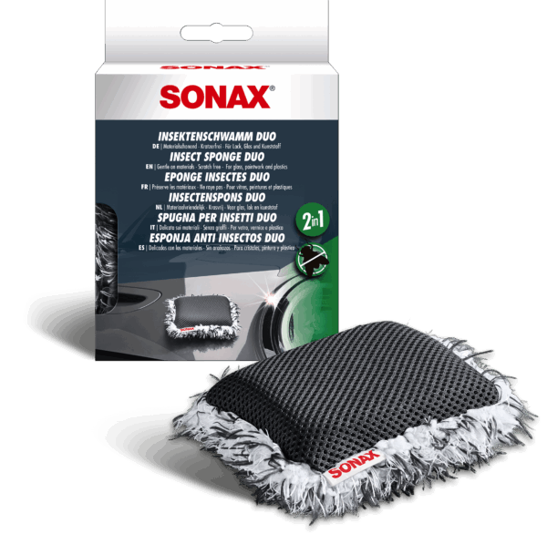 Naudokite SONAX vabzdžių likučių valiklį ar kitą Sonax produktą pagal jo paskirtį kartu su šia kempinėle.