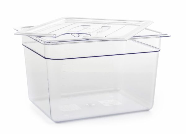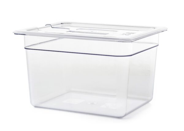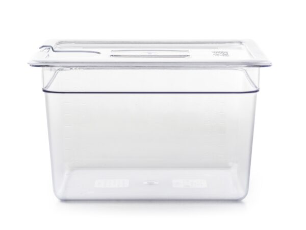 G21 sous-vide kepimo indas pagamintas iš itin atsparaus polikarbonato ir, lyginant su metaliniais puodais, efektyviau palaiko temperatūrą ir užtrunka mažiau laiko įkaitinti vandens vonią. Polikarbonatas atitinka griežčiausius saugos reikalavimus ir nekenkia sveikatai. Dėl didelio naudojamos medžiagos stabilumo indą galima plauti indaplovėje , o tai sutaupys daug laiko ir pastangų valant. Be to, inde yra nuimamas dangtis su išpjova sous-vide viryklei . Tačiau dangtį galima naudoti ir su kitos firmos virykle, nes į skylę tilps dauguma rinkoje esančių viryklių.