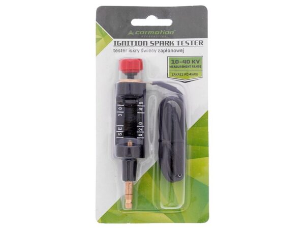 The tester makes it easy to diagnose ignition coil damage and check spark quality and strength in the spark plug. Measurement range from 10kV to 40 kV. Connect the device to the spark plug, connect the ground, then test the spark by trying to start the engine.