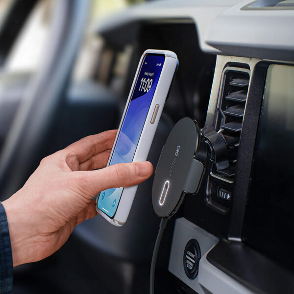 The holder fits most standard car vents. It also works with MagSafe® cases from other renowned brands.