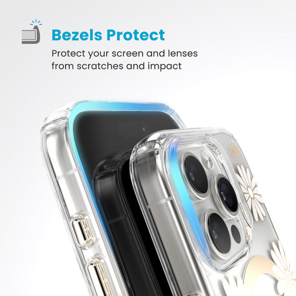 Speck Presidio Lux ClickLock & MagSafe – dėklas skirtas Apple iPhone 16 Pro Sunshine Daisies / Clear / Gold