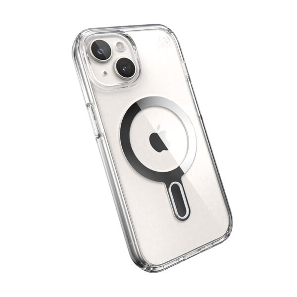 Speck Presidio® Perfect-Clear MagSafe® with ClickLock™ Interlock anti-slip technology is a transparent case with a built-in magnet, compatible with Apple MagSafe® accessories.