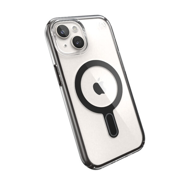 Speck Presidio® Perfect-Clear MagSafe® with ClickLock™ Interlock anti-slip technology is a transparent case with a built-in magnet, compatible with Apple MagSafe® accessories.