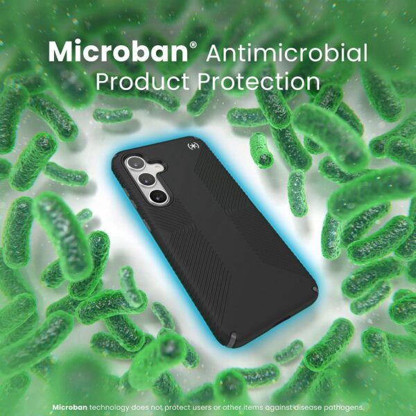 The original Speck Presidio2 Grip series protective housing also offers MICROBAN® antimicrobial protection (a global leader in antimicrobial solutions with a broad portfolio of over 25 approved technologies). The active ingredient built into the structure of the case stops 99% of bacteria that accumulate on the surface of the case. MICROBAN® technology thus provides lifelong protection against bacteria that cause stains and unpleasant odors and works at the cellular level to keep the housing clean.