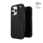 Speck Presidio®2 Grip MagSafe® with ClickLock™ Interlock anti-slip technology is a super protective case with a built-in magnet, compatible with Apple MagSafe® accessories.
