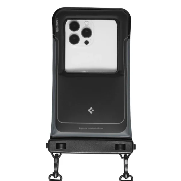 The Spigen A611P is a set of two waterproof, protective "floating pouches" designed for safe smartphone use in water—at the beach, by the pool, while kayaking, or diving. The cases are IPX8 certified, meaning they provide complete water protection up to a depth of 30 meters.