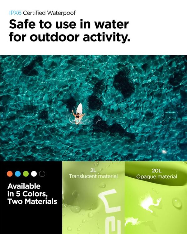 Additional 2L bag is for smartphones, wallets and small things. It is a perfect dry bag set for your outdoor activities. - IPX6 Certified waterproof rating