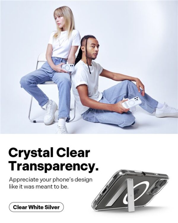 Spigen Caseology Capella MagSafe Kickstand, clear baltos spalvos sidabro spalvos – Apple iPhone 16 Pro Max
