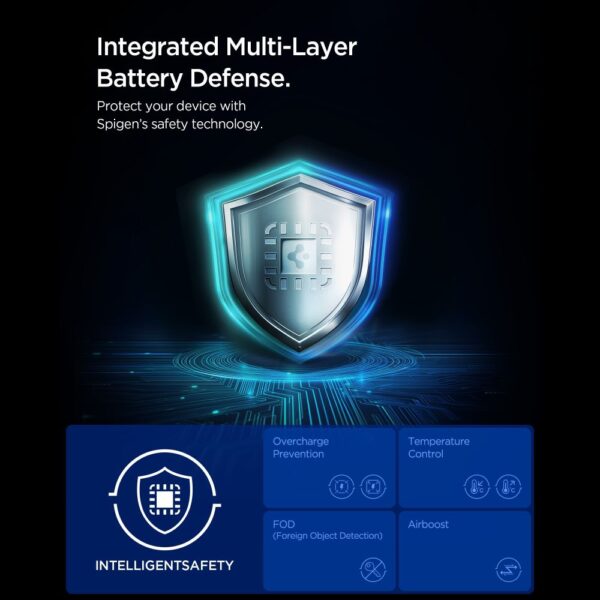 Įkroviklyje įdiegta pažangi išmaniųjų apsaugų sistema, kuri saugo jūsų įrenginius keliais lygiais. Sistema apima apsaugą nuo perkrovimo, temperatūros kontrolę, apsaugančią nuo perkaitimo, įtampos ir srovės pritaikymą pagal įrenginio poreikius bei įtampos reguliavimą, užtikrinantį stabilų įkrovimą. Komplekte yra patvarus USB-C laidas, suteikiantis didelę laisvę įkrovimo metu. Minimalistinis dizainas atrodo elegantiškai bet kokiame interjere.