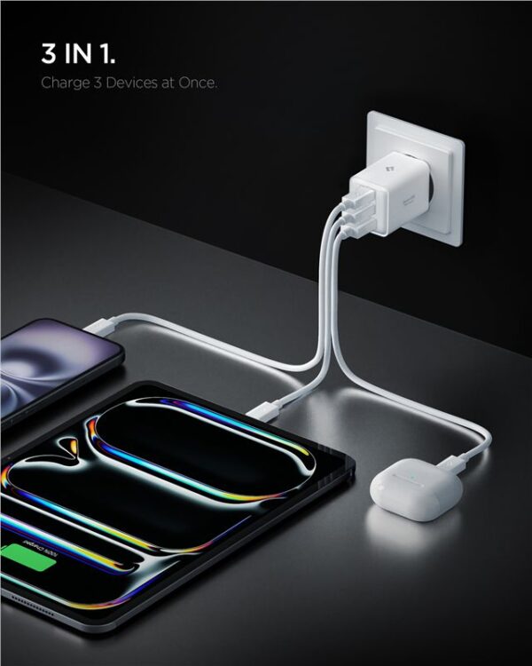 - 3-in-1 Charging: Saves space and allows you to charge phones, tablets, or other devices simultaneously.