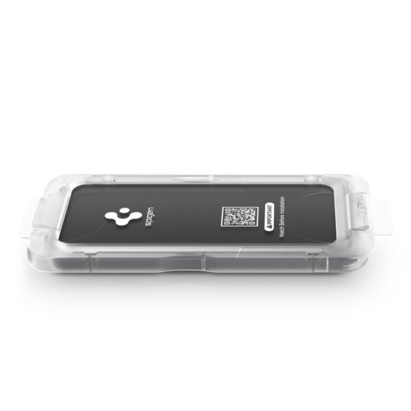 Spigen Glas.tR "EZ Fit Pro" tempered glass is a high-quality screen protector with a convenient EZ Fit Pro mounting system that allows for quick, precise, and hassle-free application without bubbles or slippage. It consists of multiple layers, including an oleophobic coating to reduce fingerprints, a protective layer to absorb impacts, and tempered glass with a 9H hardness that effectively protects the screen from scratches and damage.