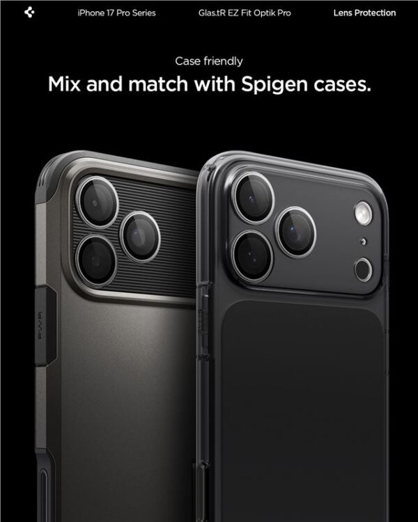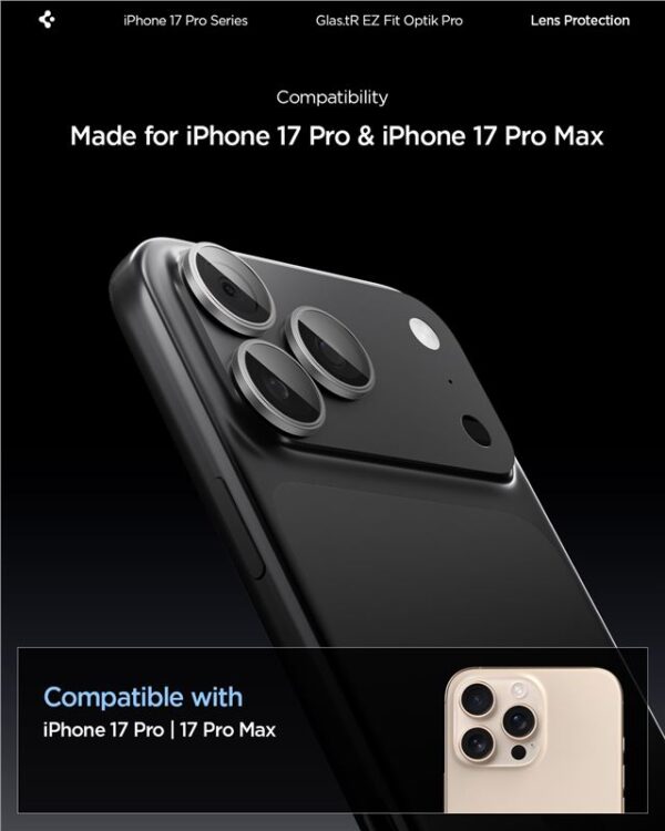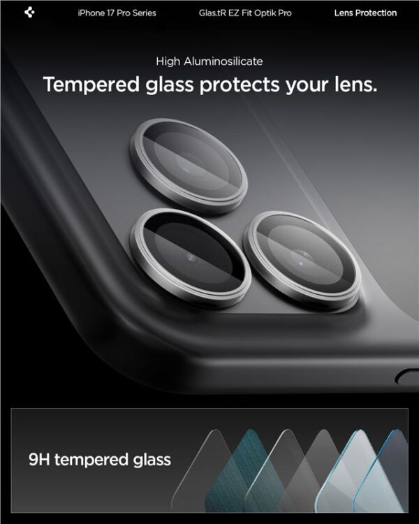 Spigen Glass tR EZ Fit Optik Pro 2 Pack, pilkos spalvos – Apple iPhone 17/16/15/14 Pro / 17/16/15/14 Pro Max