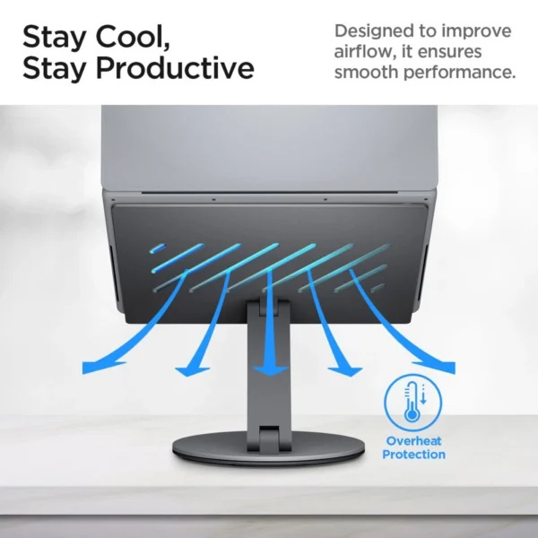 The Spigen LD204H is a modern and functional laptop stand with a built-in 6-in-1 hub, designed for users who value ergonomics, aesthetics, and multitasking. Thanks to its solid aircraft-grade aluminum construction, the stand not only provides stability but also a modern look that complements any desk.
