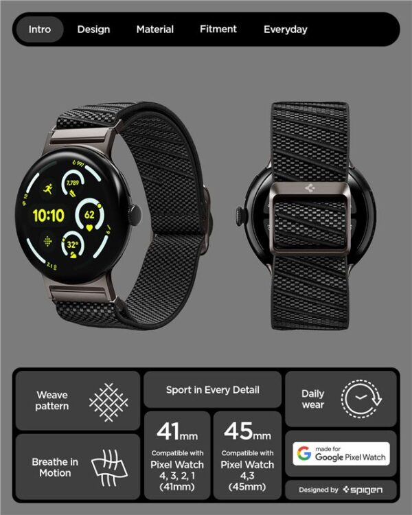 Spigen Lite Fit X apyrankė, juodos spalvos – Google Pixel Watch 4/3/2/1 41mm
