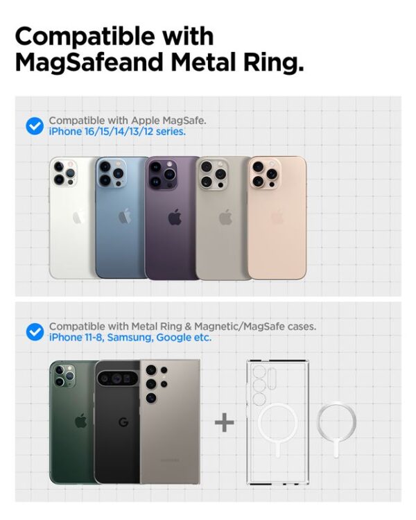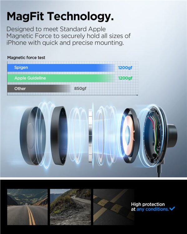 - MagFit technology: strong magnetic force of 1200gf meets Apple’s standard for secure attachment of all iPhone sizes.