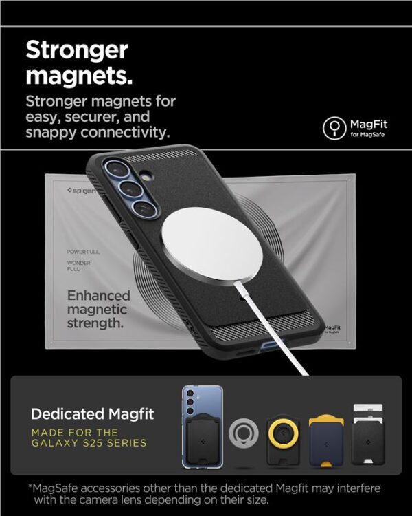 Spigen Rugged Armor MagSafe, matinės juodos spalvos – Samsung Galaxy S25+
