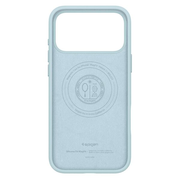 Spigen Silicone Fit MagSafe dėklas skirtas Apple iPhone 17 Pro Max – mėlynos spalvos