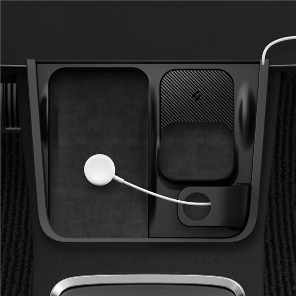 Practical and elegant 3-in-1 charging organizer for Tesla cars.