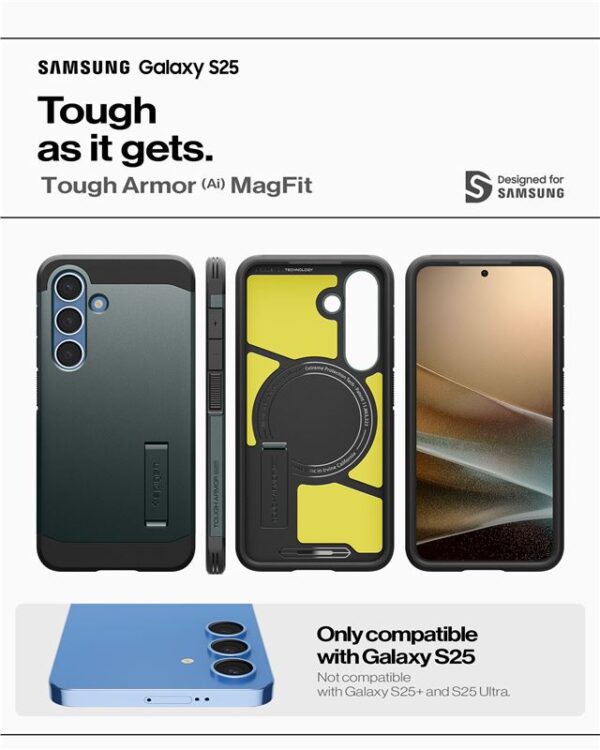 Spigen Tough Armor MagSafe dėklas skirtas Samsung Galaxy S25 – žalios spalvos