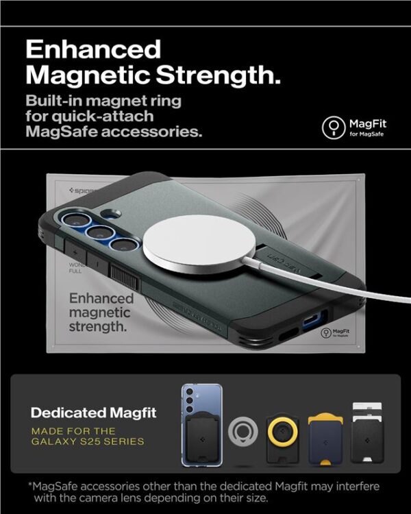 Spigen Tough Armor MagSafe Samsung Galaxy S25 Plus – dėklas telefonui žalios spalvos