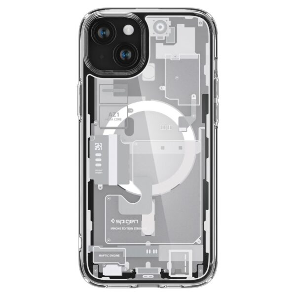 Spigen Ultra Hybrid Mag dėklas su MagSafe for Apple iPhone 15 – baltos spalvos (Zero One Pattern)
