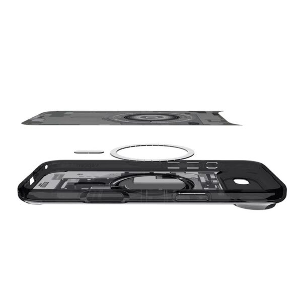 The Spigen Ultra Hybrid MagSafe is a case that combines effective protection with aesthetic appeal. Its hybrid TPU and PC construction shields the device from damage while showcasing its natural design. A built-in magnetic ring ensures full compatibility with MagSafe accessories, enabling fast and efficient wireless charging. Air Cushion cushions in reinforced corners absorb shock, while raised edges keep the screen and camera safe. Precise cutouts and a perfect fit ensure comfortable everyday use.