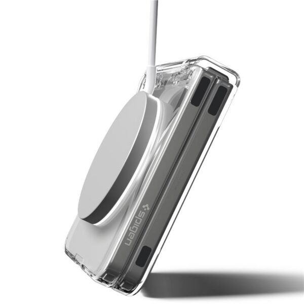 Spigen Ultra Hybrid Pro Mag MagSafe dėkals skirtas Samsung Galaxy Z Flip 7 – Clear and baltos spalvos
