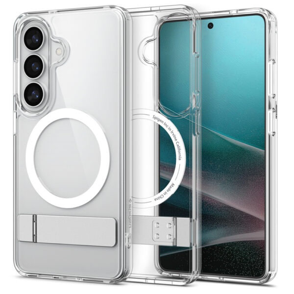 Spigen Ultra Hybrid S Mag MagSafe dėklas skirtas Samsung Galaxy S26+ – skaidrus ir baltos spalvos