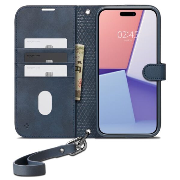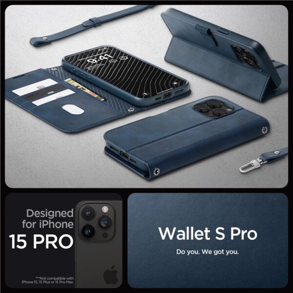Spigen Wallet S Pro dėklas skirtas Apple iPhone 15 Pro – mėlynos spalvos