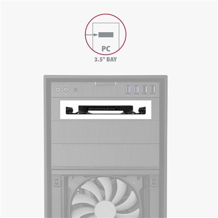 The AXAGON RHD-125B metal frame for mounting 2.5″ HDD or SSD drive into one 3.5″ position of the PC case.
